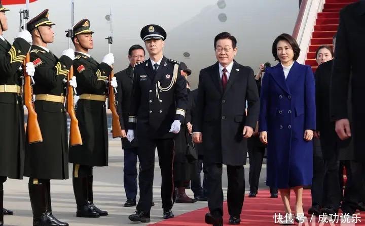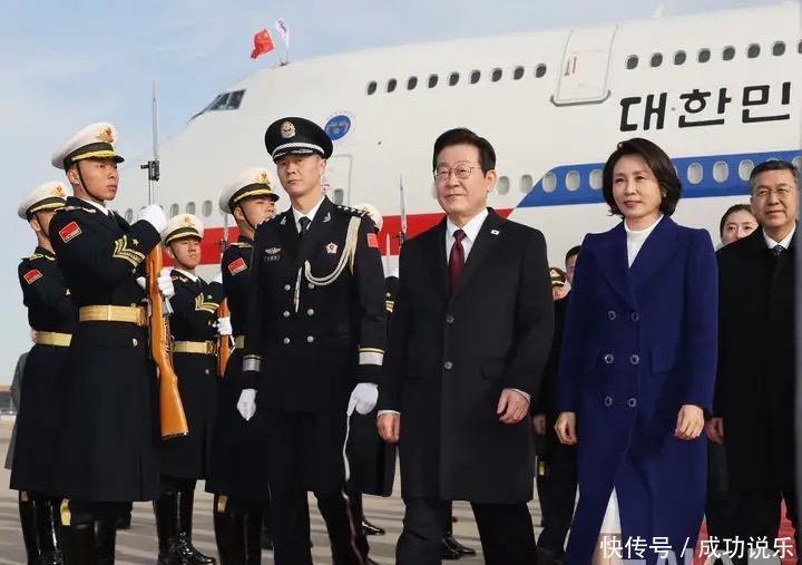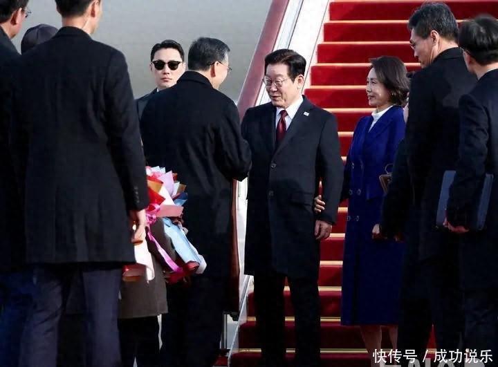 这回是李在明上任后首度访华,整整六年了,韩国总统才又踏进这片土地。他本人戴副圆框眼镜,换上金棕色新领带,身板笔挺;一旁的金惠景呢?一会儿是白色针织裙配蓝色大衣,宫廷风细节藏在褶皱里;转头出席韩侨招待会,立马换上传统韩服——白上衣、宝蓝裙,满幅刺绣不张扬却压得住场,腰间还系了条鲜亮红飘带,喜气,又不俗。 最戳人的是她蹲下来接小朋友献花那幕:孩子也穿着小号韩服,脸蛋圆嘟嘟的;她微微前倾,眼神柔软,全然没个“第一夫人”的端架子。李在明更逗,偷偷对着一排娃比了个心,现场快门声哗啦啦响成一片。